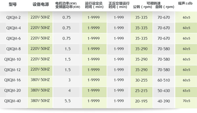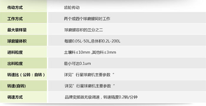 表二:360度旋轉行星球磨機主要參數